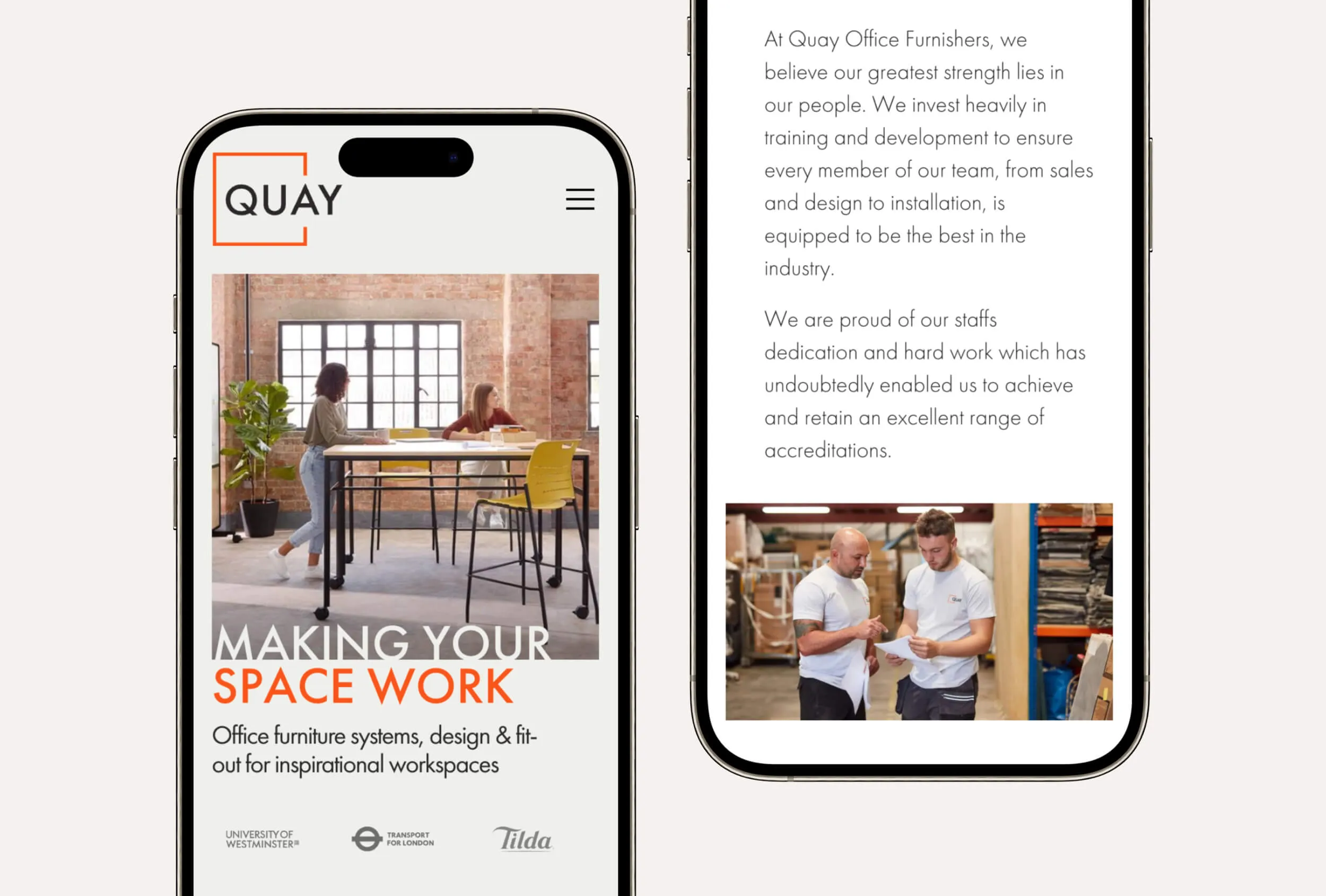 We undertook a brand refresh to simplify assets and introduce a more vibrant colour palette. We then created a modern and minimalist website which showcased the range of manufacturers that Quay supply and fit, together with some striking choice of imagery.