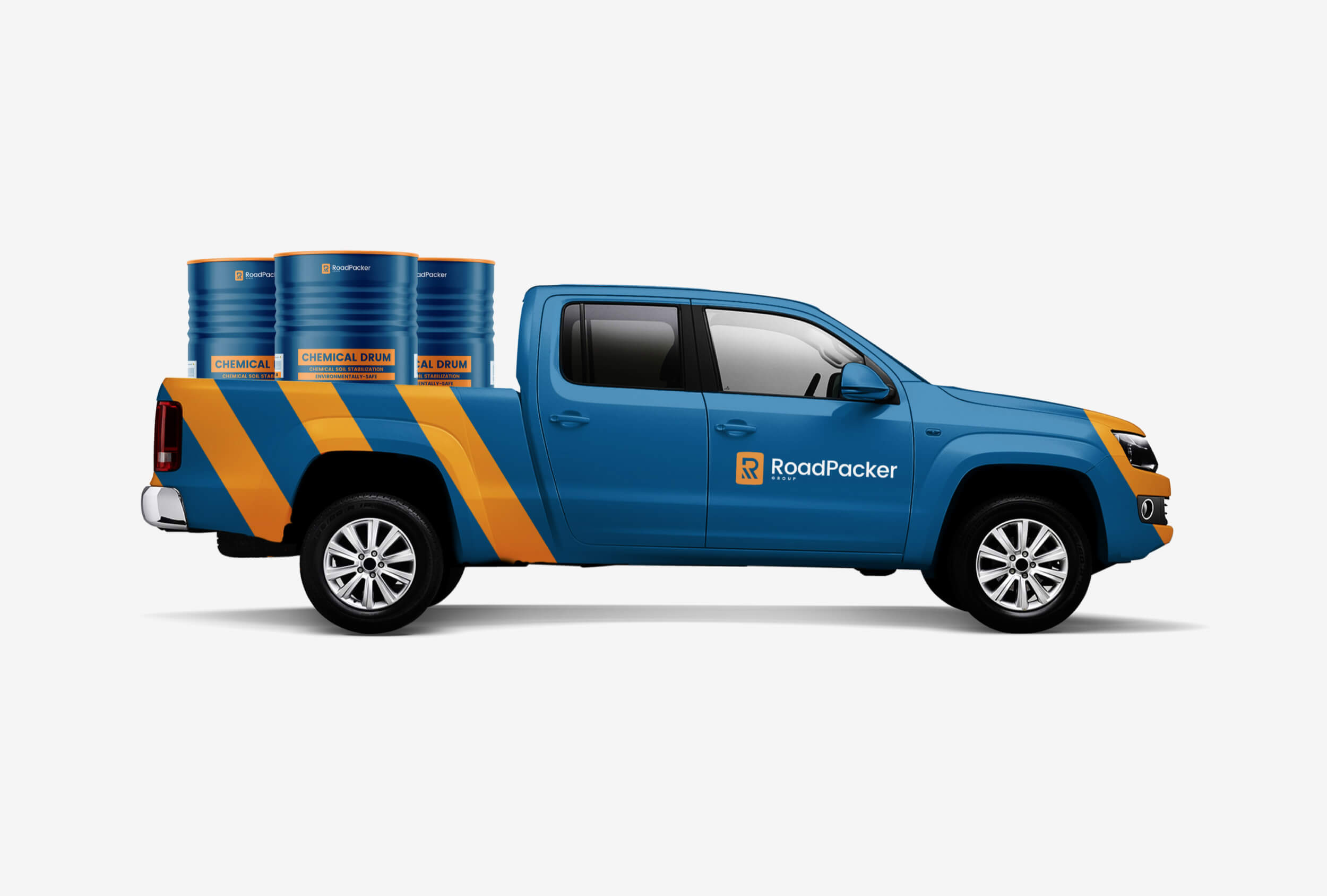 Part of the simplicity of RoadPacker's eco-friendly products is that they are distributed in an easy-to-handle reusable drum. The drum became a core part of the messaging and the logo. The addition of the lines within the 'R' of the logo are formed by the concept of the layering of the soil to enable compression and compaction.